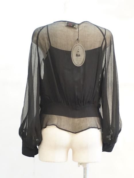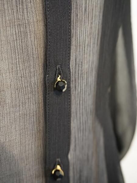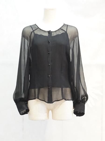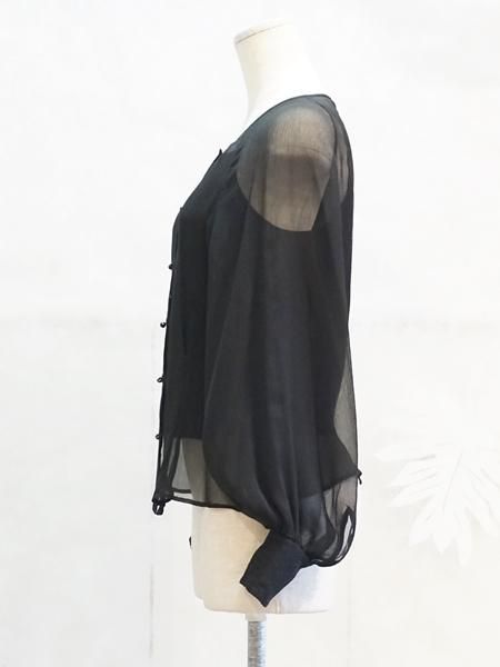 シルク楊柳生地は縦畝が流れるように揺らぐエレガントな表情が魅力です。袖先もたっぷりとドレープします。カフスはレース貼り。さらりとしてエアリーな着心地。キャミソール付き。