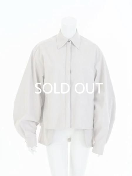 肌触りの滑らかなスエード素材を使用したレイヤードシャツ。全体的にゆったりとしたボックスシルエットに加え、ドロップショルダーとボリュームある袖が特徴的です。身ごろの裾は同素材のスエードがレイヤードされています。